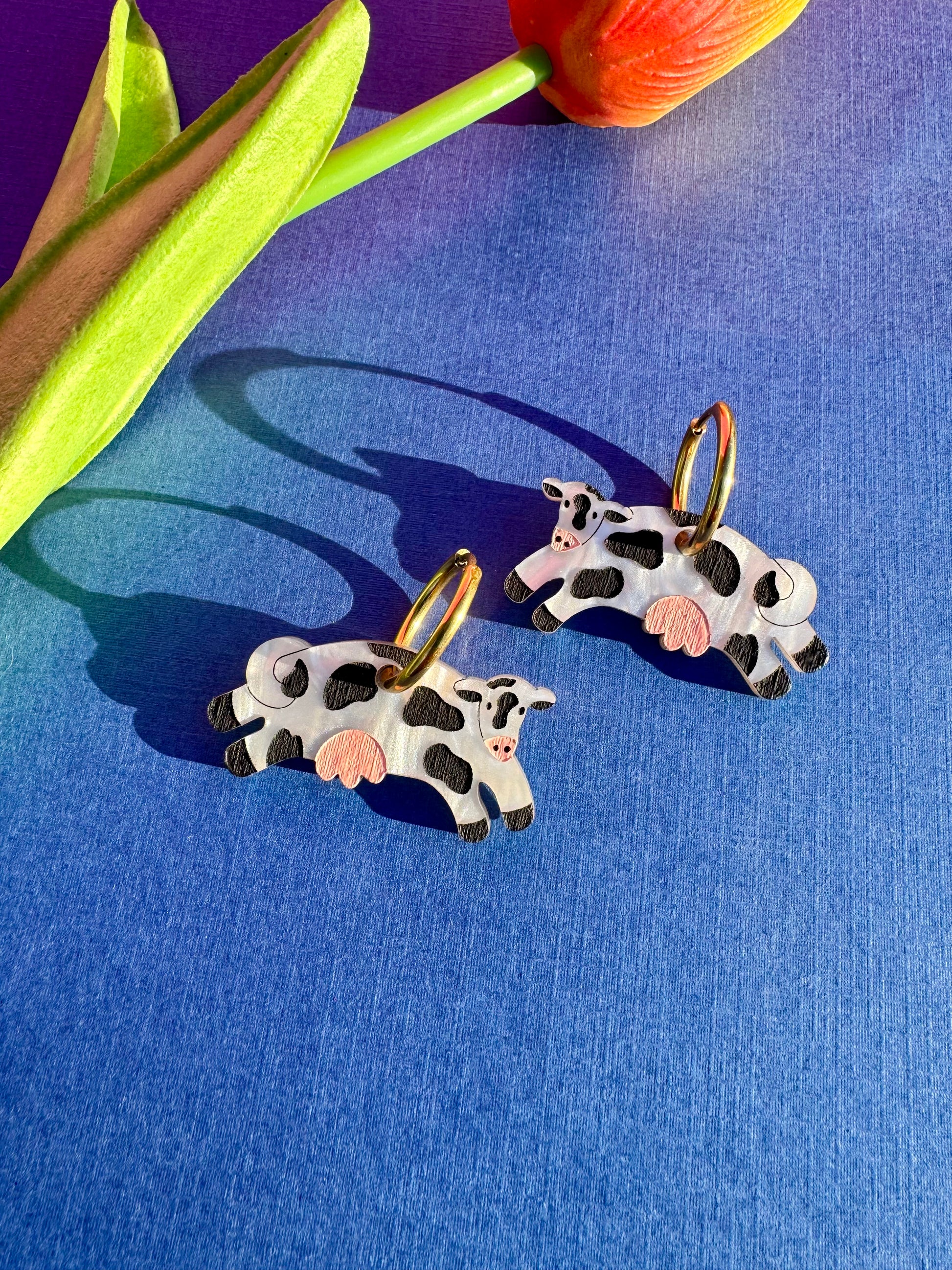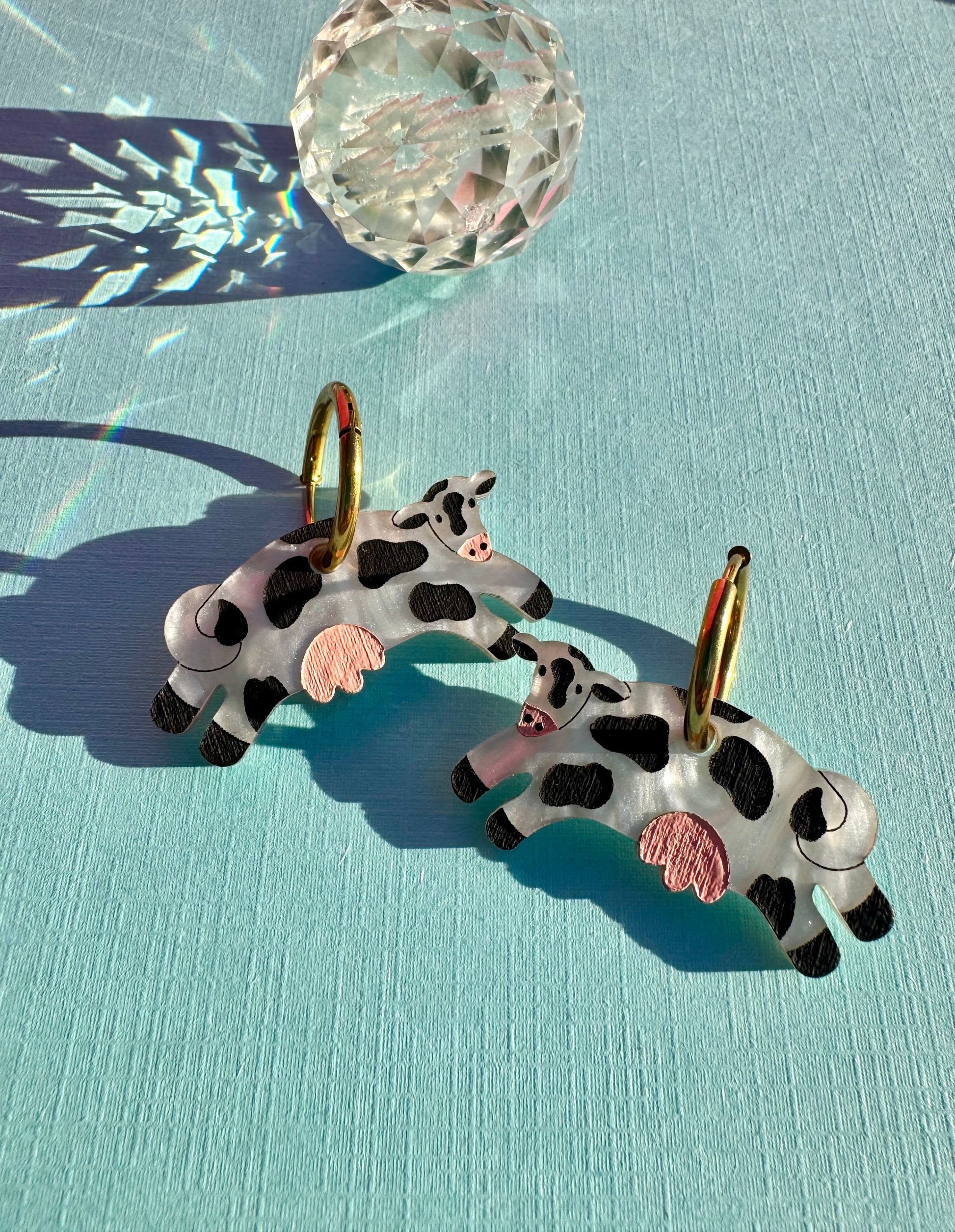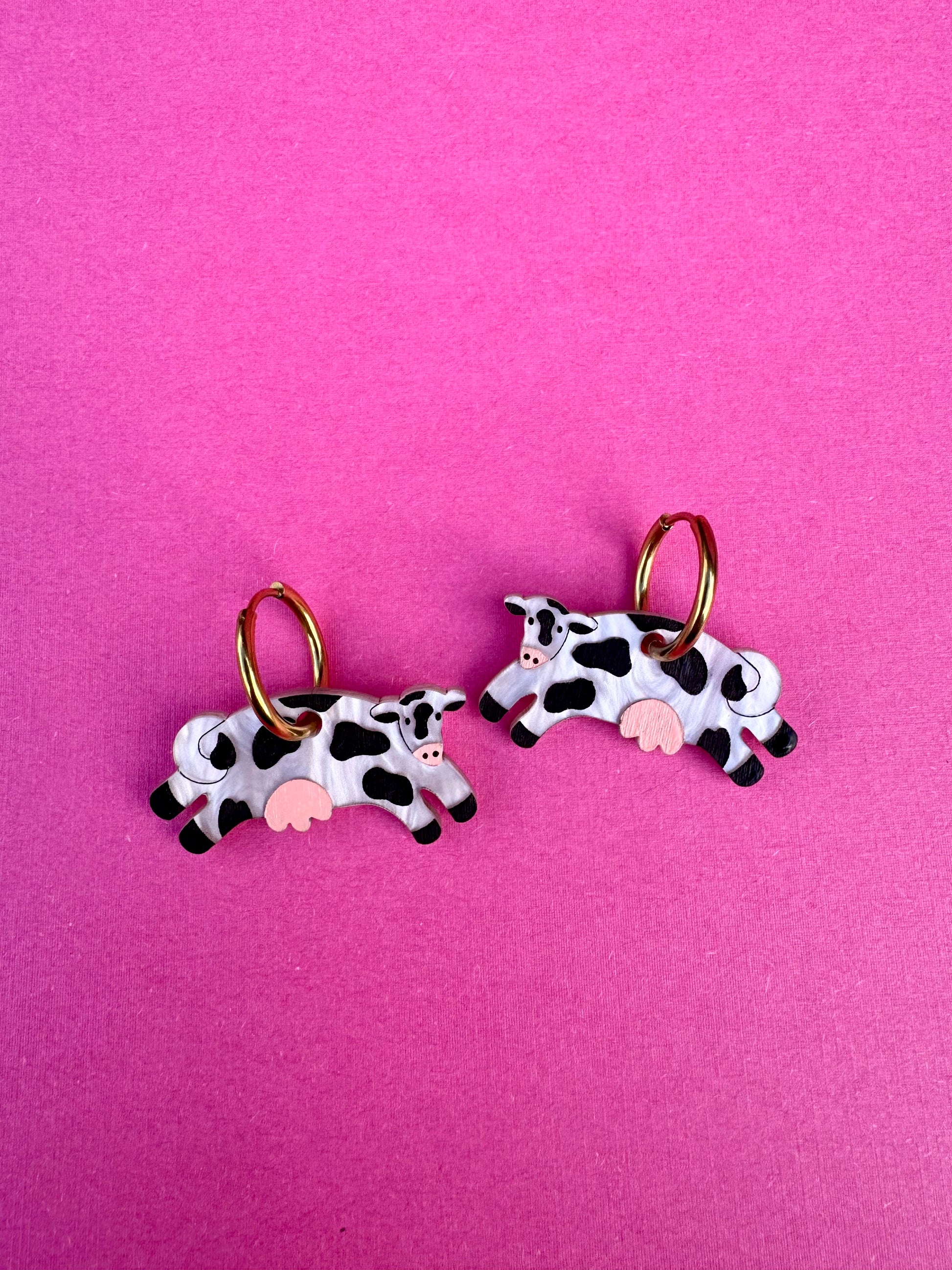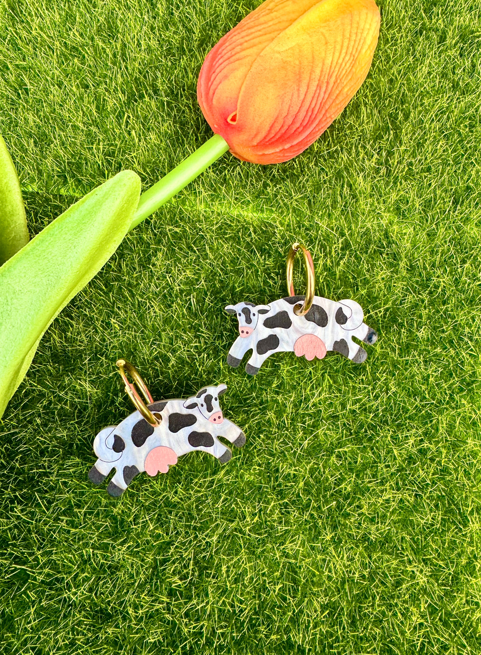 A redesign of our original character, honey moo moo. We've recreated this design to better match our honey moo moo hair claw and enamel pin. The new design features a marbles acrylic, and its smaller and lighter on your ears!