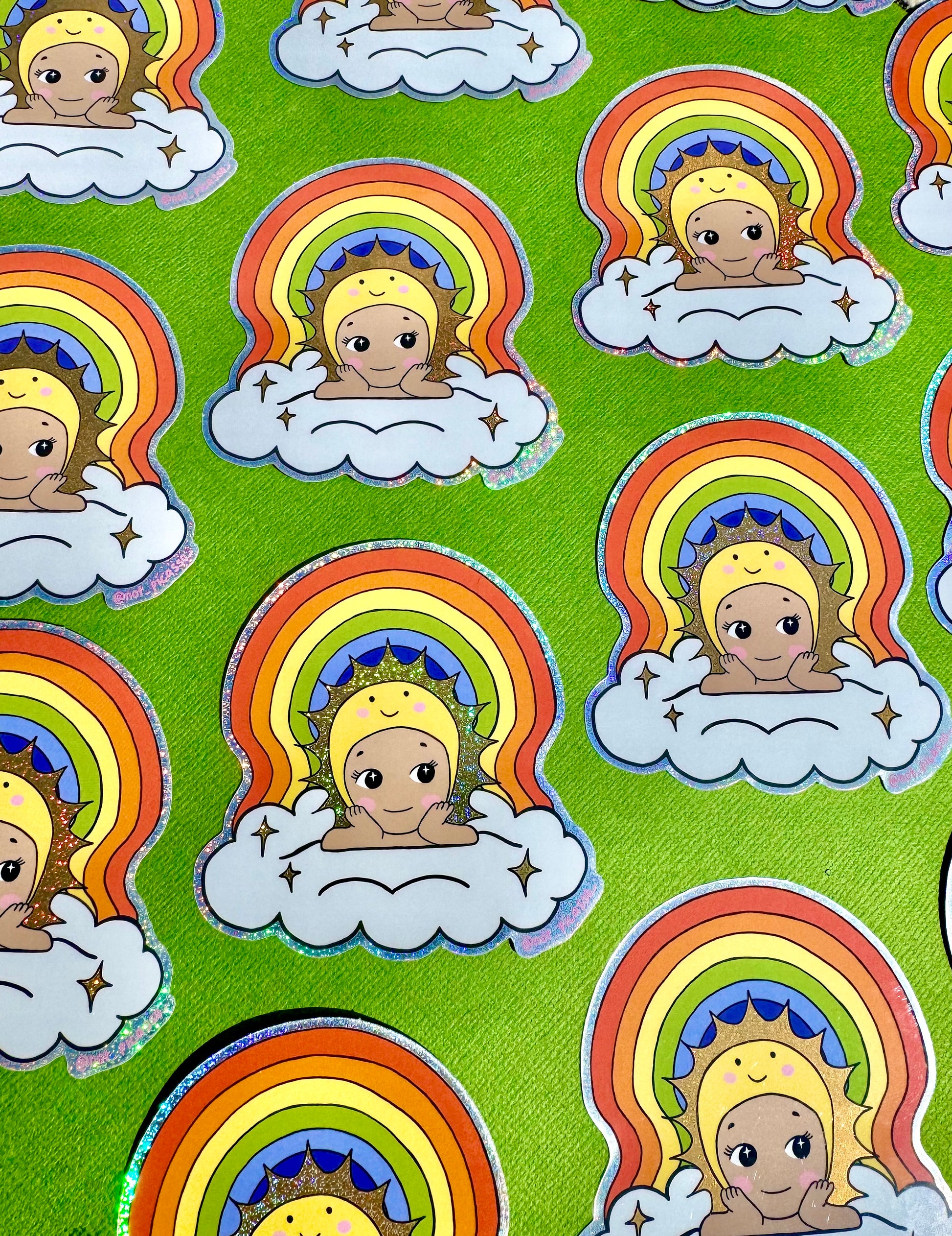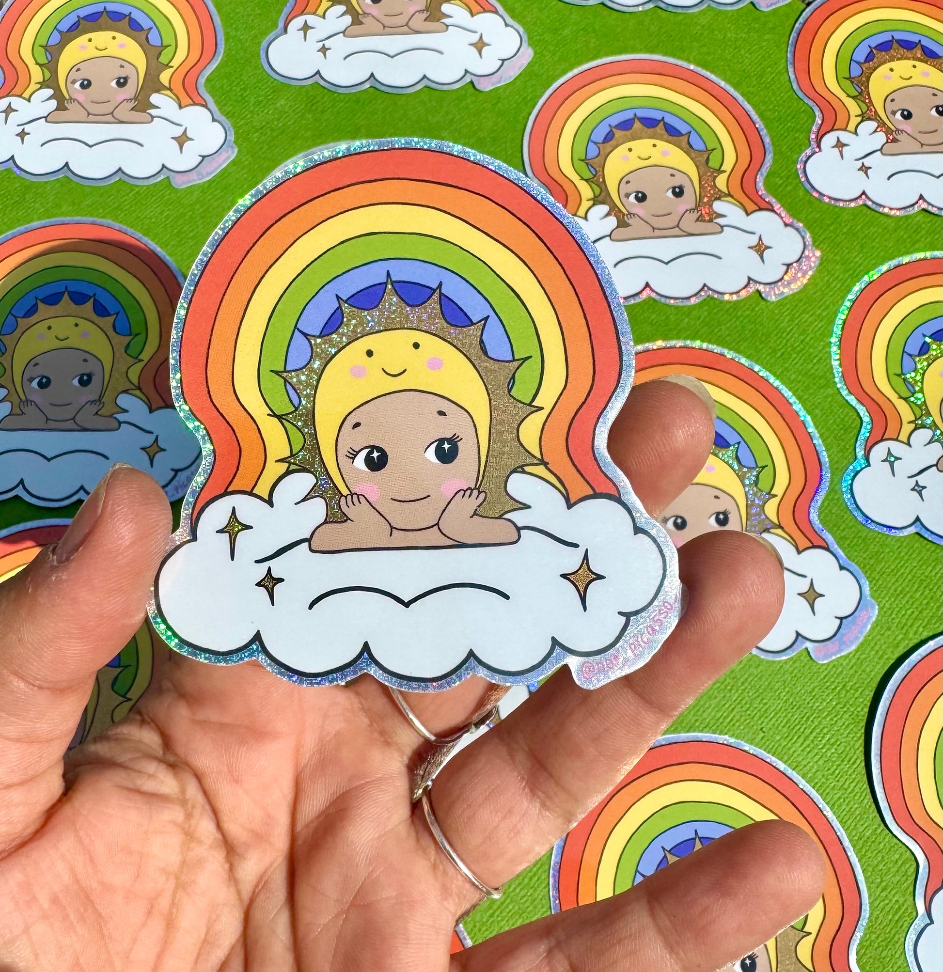 This glittery sticker is so cute and perfect for pride! Measuring at 2.7x 2.8 this vinyl sticker is waterproof and weatherproof making it great for phone cases, water bottles, laptops, and more!