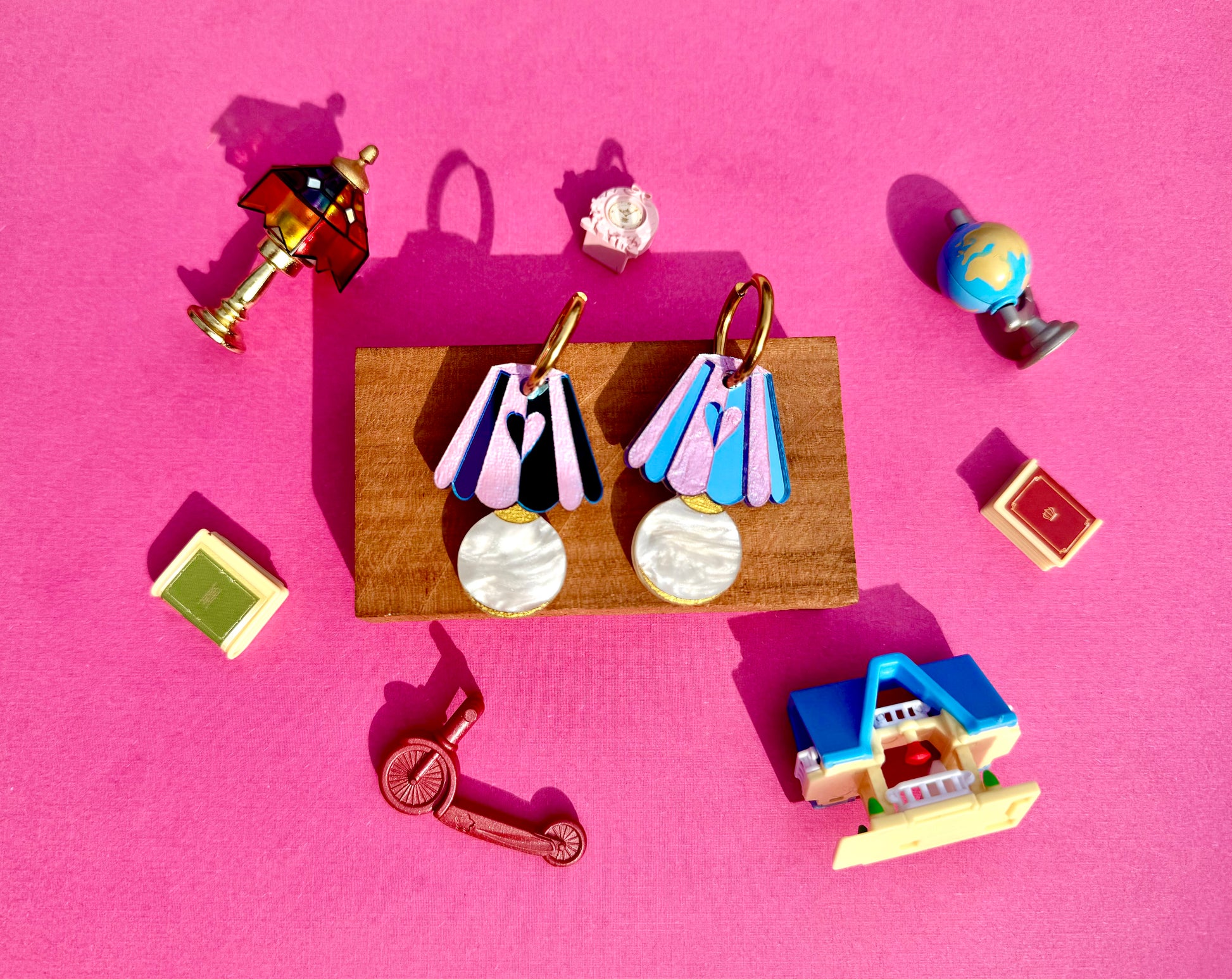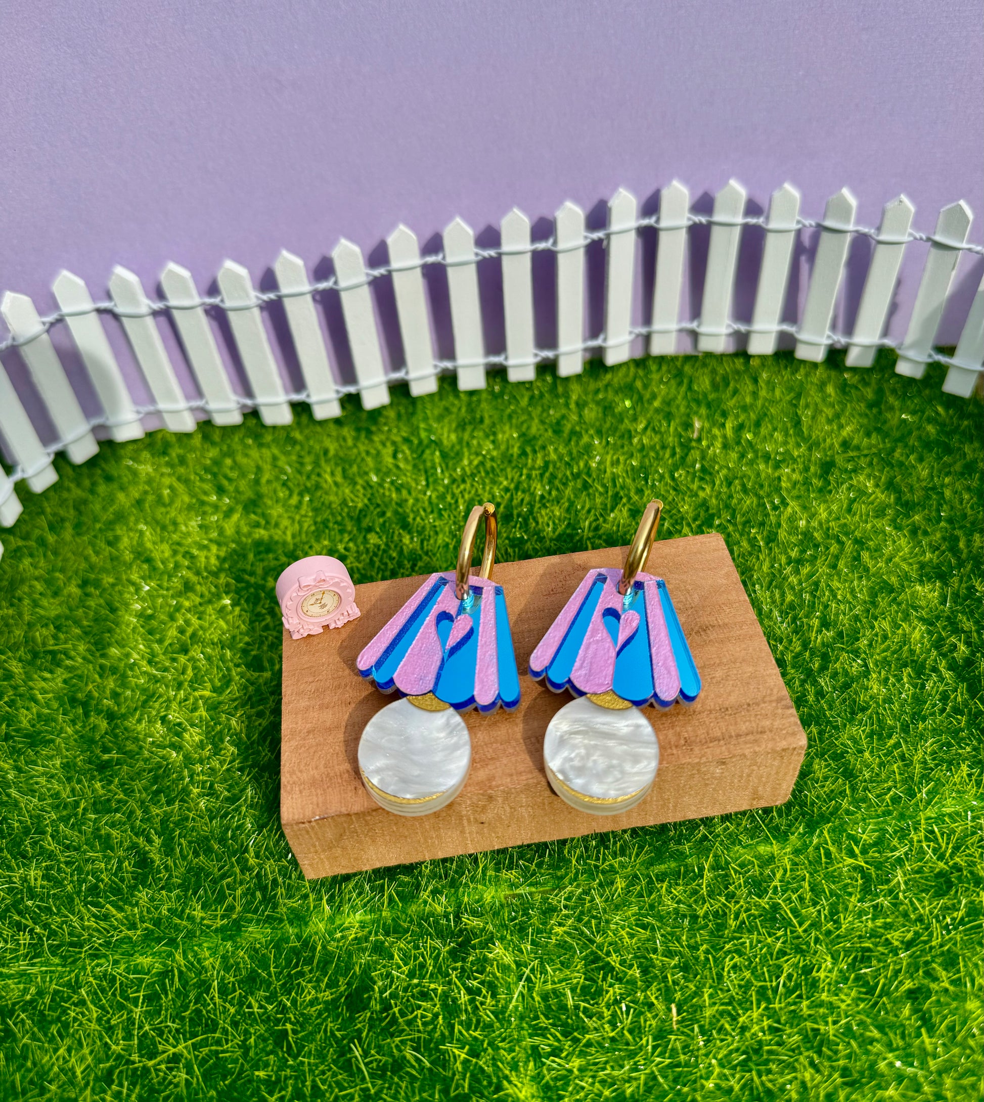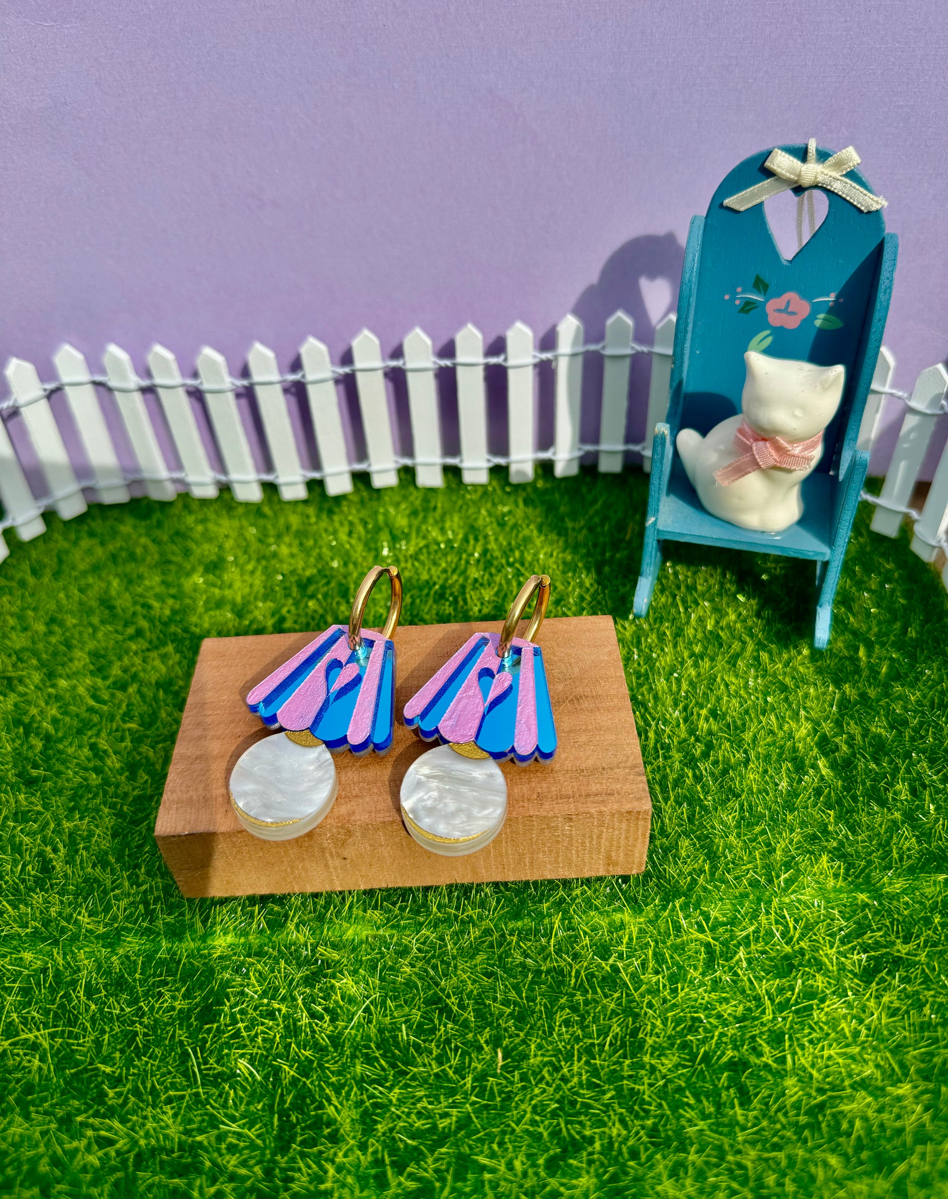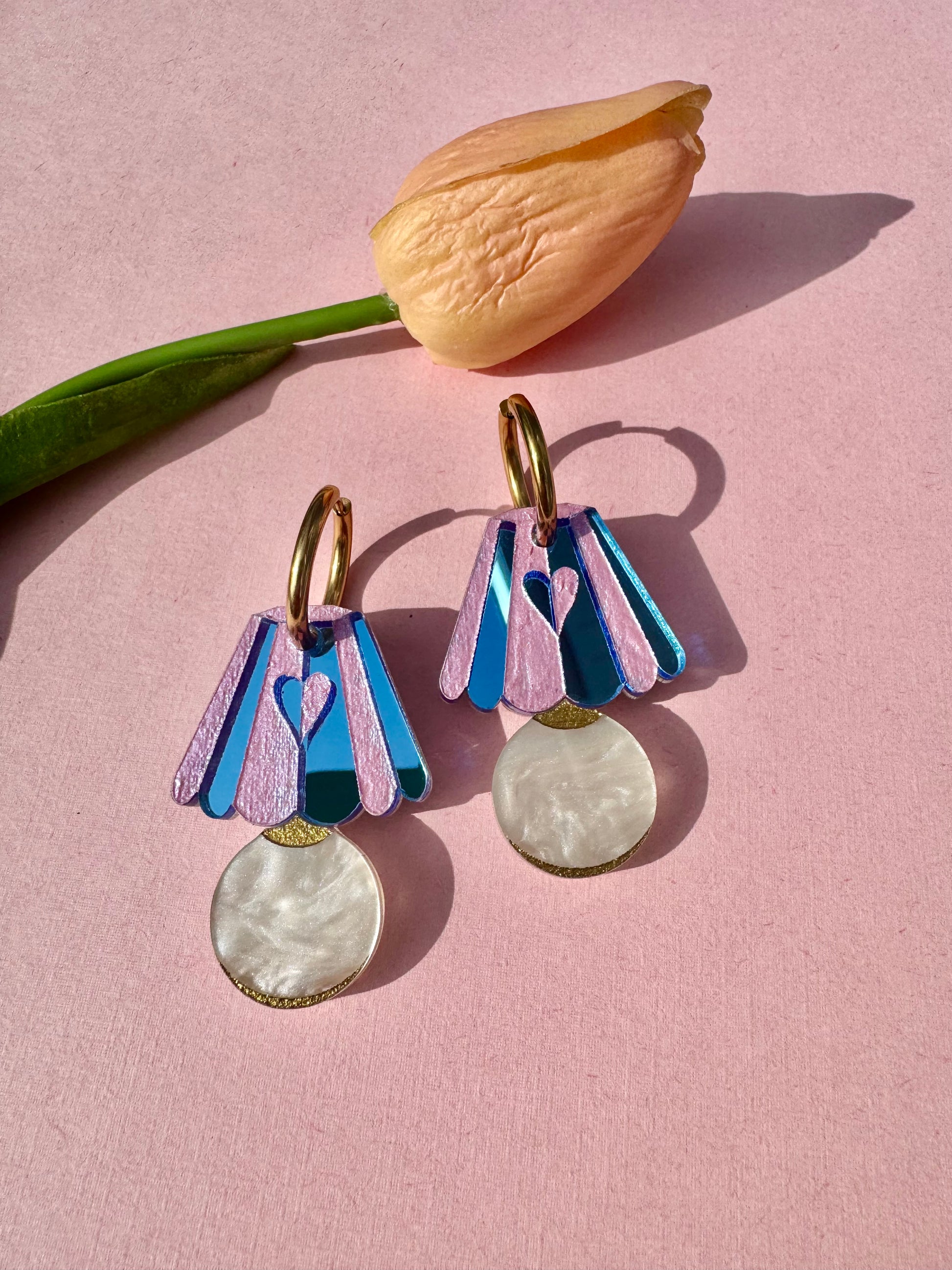 Handmade acrylic earring finished with 18k gold plated stainless steel hoops. All of our hardware is nickel free and hypoallergenic, making it comfortable for most ears.