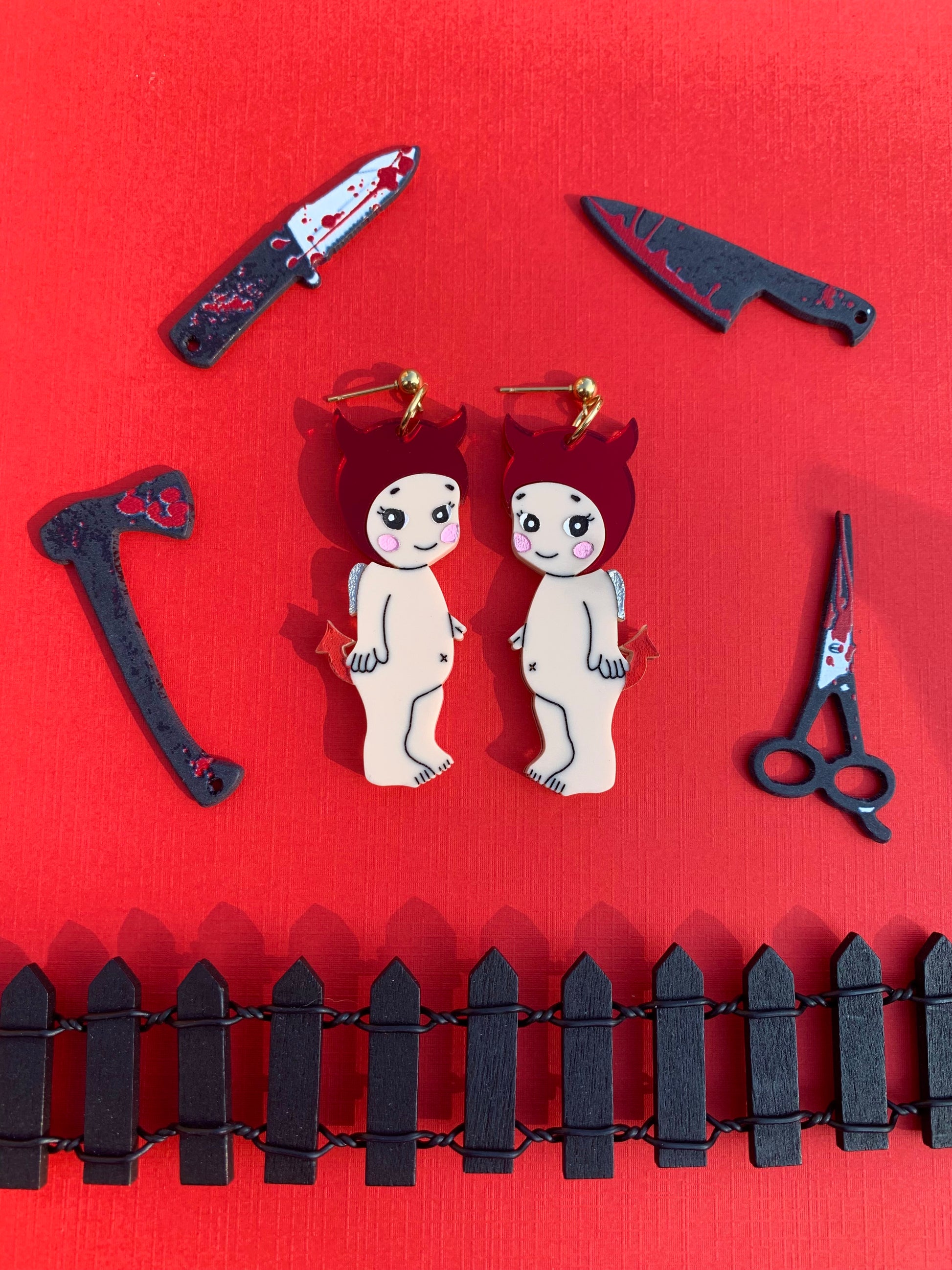 Handmade acrylic earring finished with 18k gold plated stainless steel ball posts. All of our hardware is nickel free and hypoallergenic, making it comfortable for most ears.