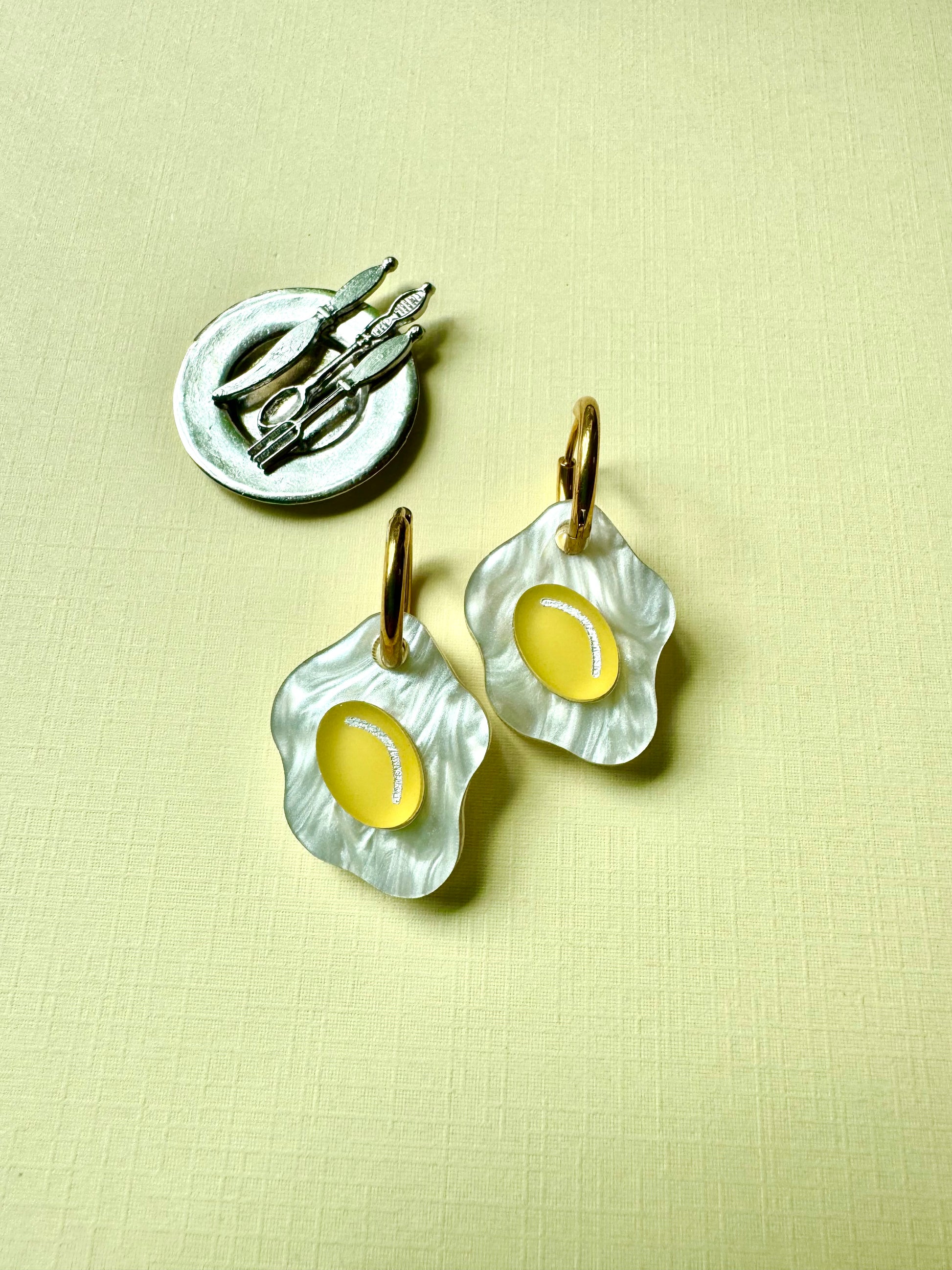 Handmade acrylic earring finished with 18k gold plated stainless steel mini hoops. All of our hardware is nickel free and hypoallergenic, making it comfortable for most ears.