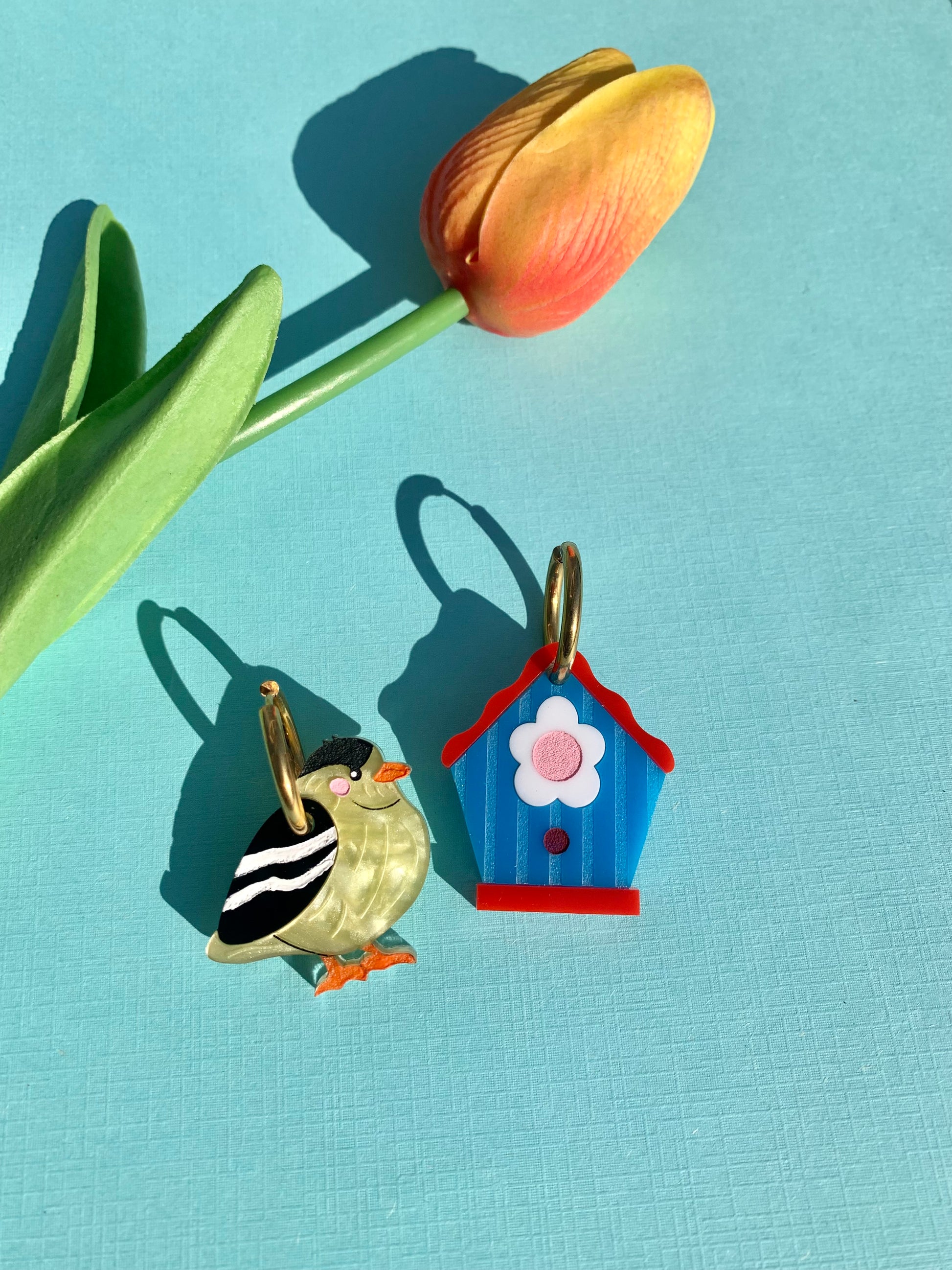 Made from an original design and laser-cut acrylic. Each piece is handmade and made to order, so slight differences can be expected. These are finished with hypoallergenic, anti-tarnish gold-plated stainless steel hoops.